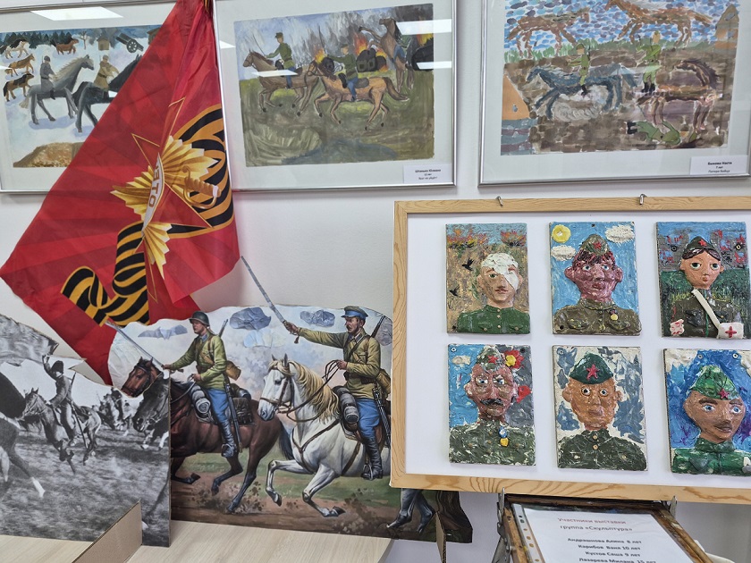 Красной кавалерии Великой Отечественной войны и ее роли в Победе посвящена выставка детских рисунков студии живописи и графики Арт-коллаж, торжественно открытая в библиотеке. Руководит студией преподаватель-энтузиаст, член Союза художников России Елена Алексеевна Агапова, чье педагогическое мастерство не ограничивается рамками живописи, она растит настоящих патриотов нашей Родины.